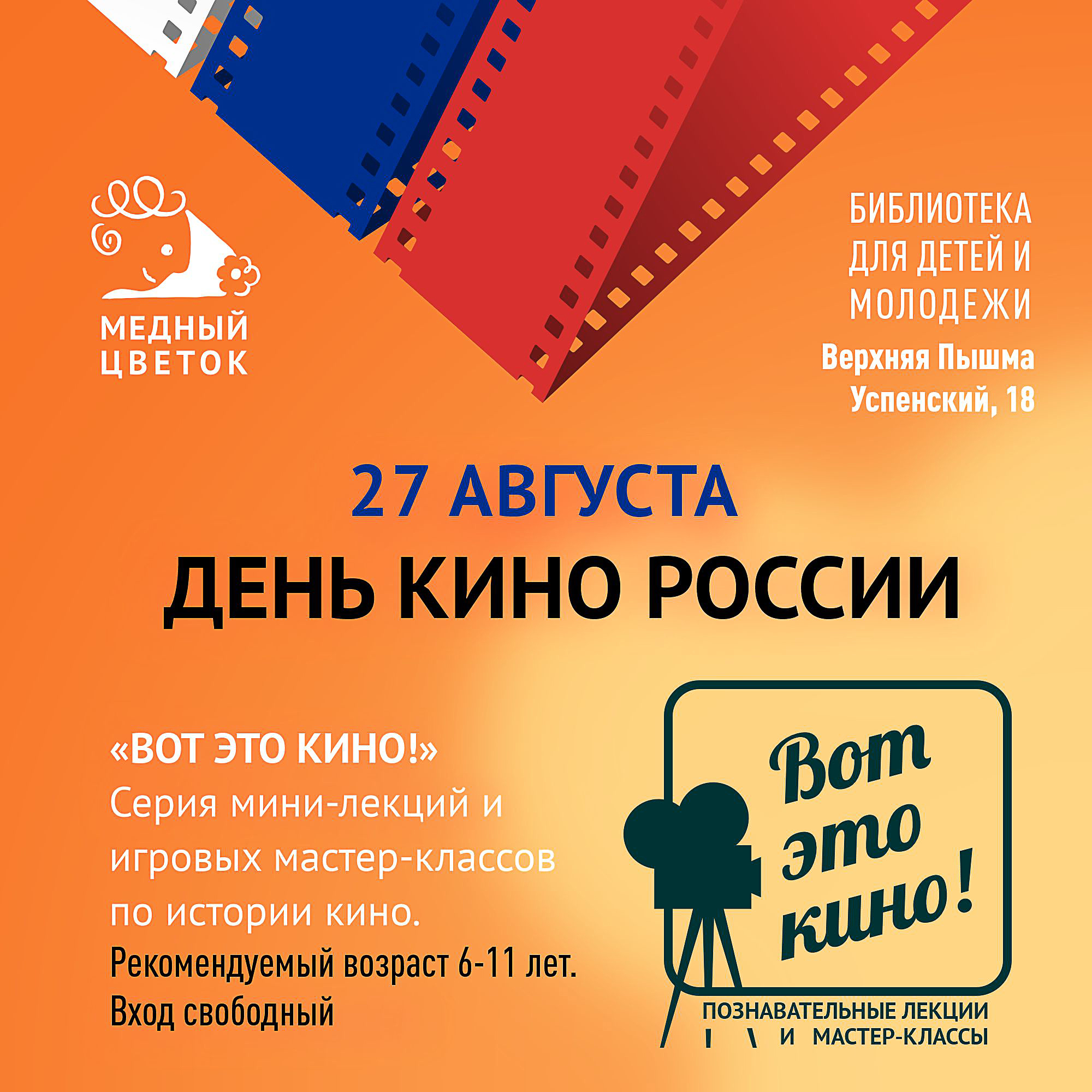 27 августа, в День кино, мы запускаем серию интерактивных лекций и мастер-классов «Вот это кино!» для детей до 11 лет, где расскажем об истории создания кино и познакомим с профессионалами и энтузиастами кинематографа. Это шанс лично познакомится с теми, кто создает любимые всеми нами кинокартины!